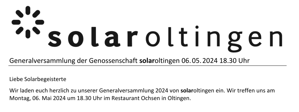 Wir laden alle Mitglieder von solaroltingen zur Generalversammlung 2021 ein.